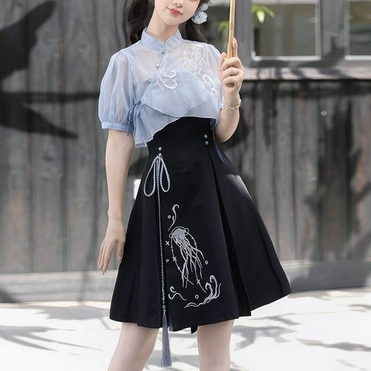 Embroidered Shirt + Short/Skirt Outfit SE10307