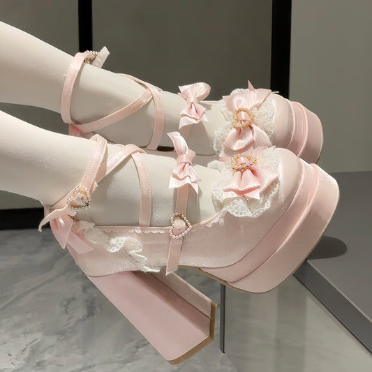 Lace Bow Lolita Heel Shoes SE23956