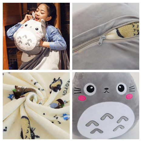 Gray/Pink Cartoon Pillow + Blanket SE11021