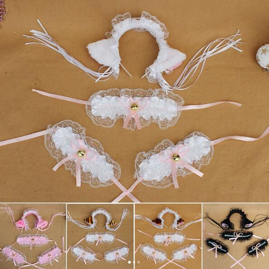 Cute kawaii lace cat ear hair band three-piece SE9402