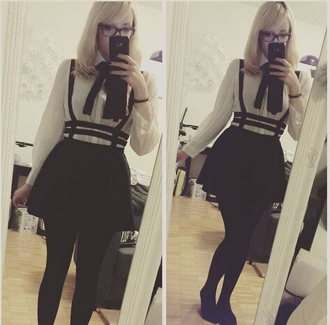 Japanese Grid Blouse Braces Skirt Set SE20969