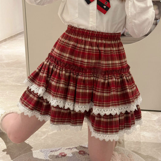 Lace Flower Plaid Skirt SE23682