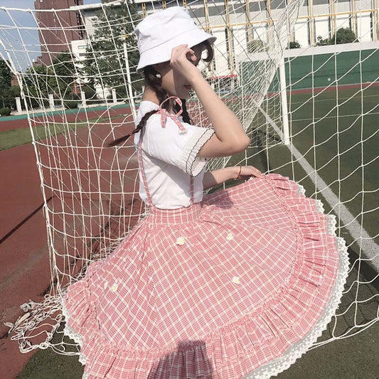 Sweet Grid Straps Skirt SE21558