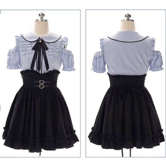 Bow Off Shoulder Blouse Black Skirt Set SE22839