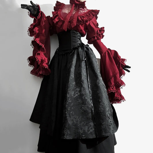 Lace Blouse Black Skirt Set SE23422