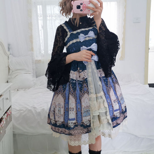 Lace Mesh Bow Off Shoulder Blue Dress SE22847