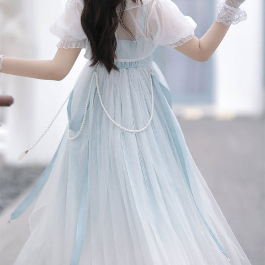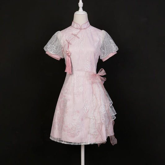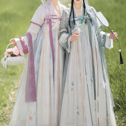 Pink Flowers Embroidered Hanfu Dress SE22729