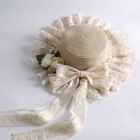 Lace Bow Flower Ribbon Straw Hat SE23601