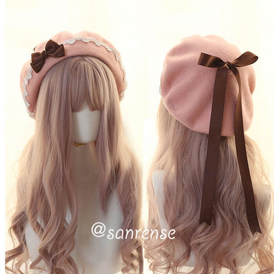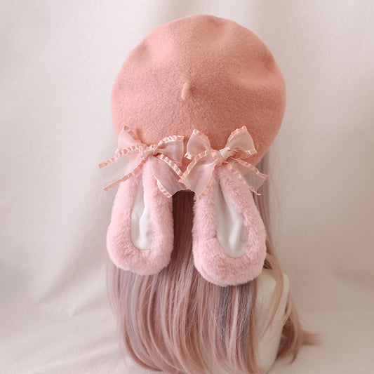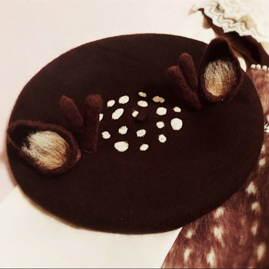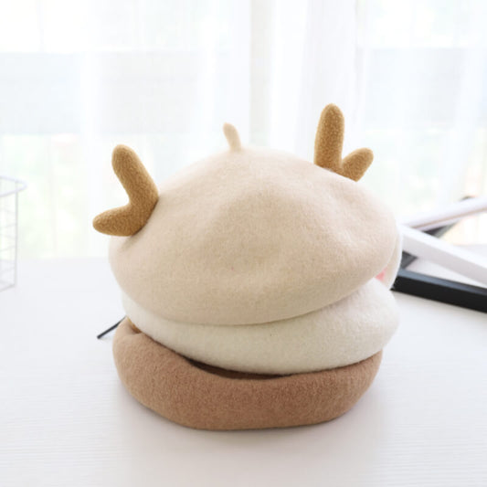 Cute Deer Horn Wool Berets Bowknot Cap SE20698