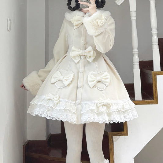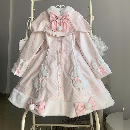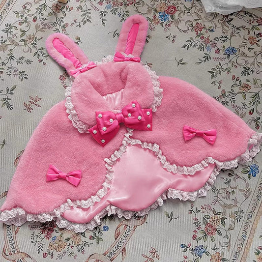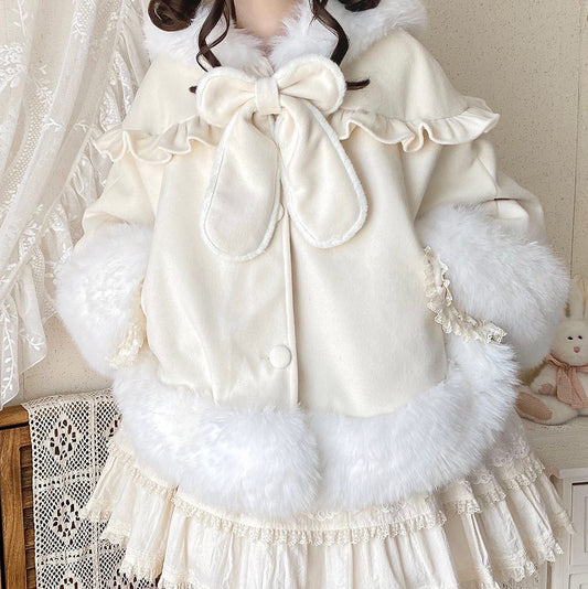 Woolen Rabbit Bow Cape Hoodie SE23701