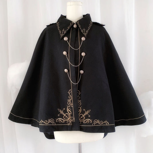 Japanese Embroidered Dovetail Woolen Cape Coat SE20763