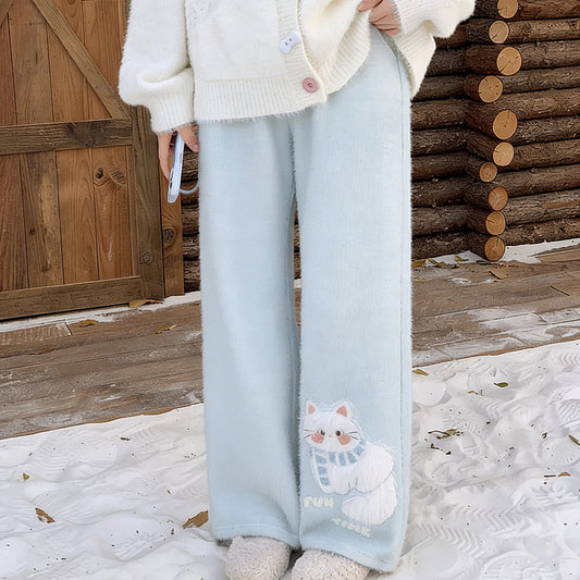 Cat Embroidery Fleece Warm Trousers SE23818
