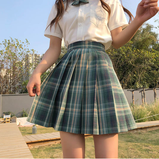 Japanese Grid Blouse Braces Skirt Set SE20969