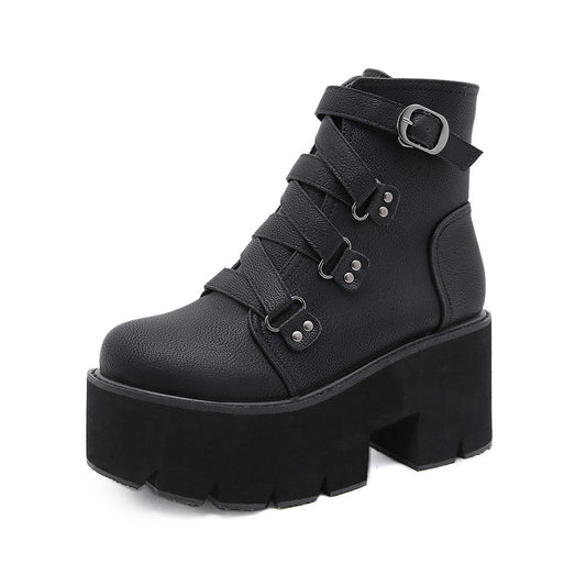 Black Buckle Strap Platform Combat Boots SE23564Regular price $42.00 USDRegular priceUnit price per-