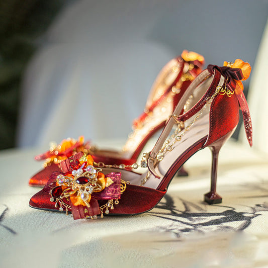 Red Lace Ribbon Heels with Pearls Bridal Shoes SE23560Regular price $71.00 USDRegular priceUnit price per-