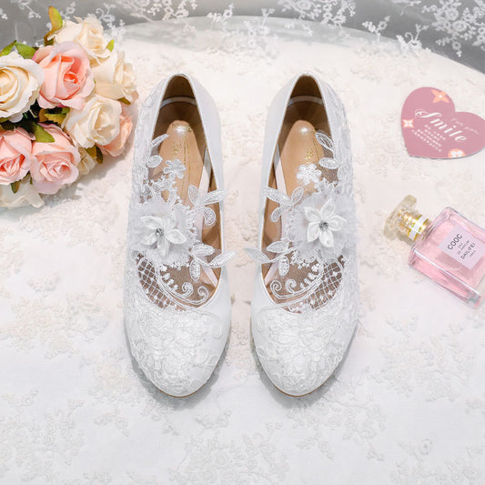Lace Flower White Heels Shoes SE23589Regular price $40.00 USDRegular priceUnit price per-
