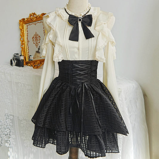 Lace Bow Blouse Suspender Skirt Set SE22155