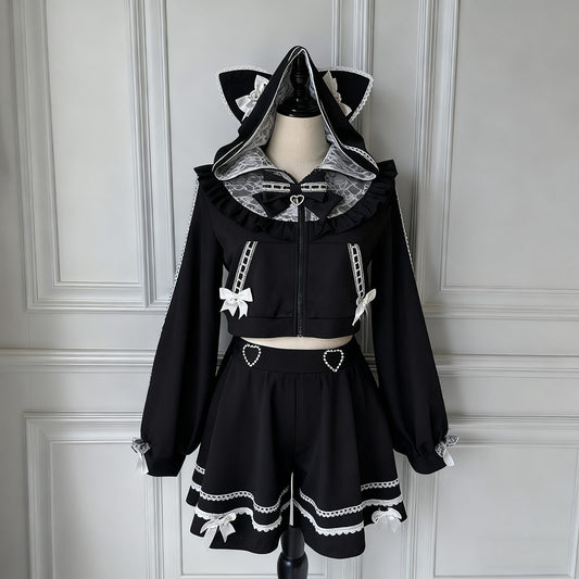 Lace Bow Cat Hoodie Skirt Set SE23755