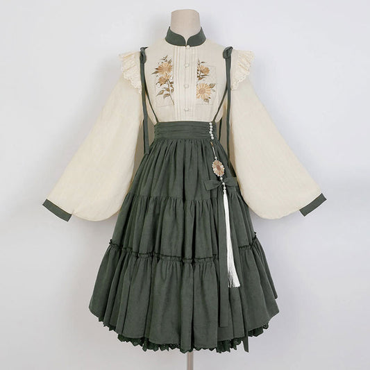 Lolita Bow Blouse Floral Skirt Set SE22545