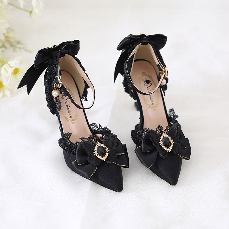 Black Butterfly Lace Heels Shoes SE23541