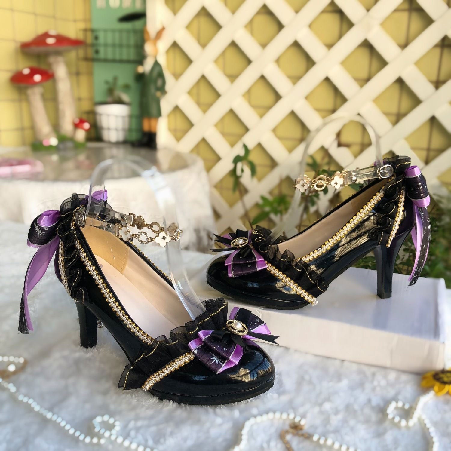 Black Heels With Lace Bow SE23407