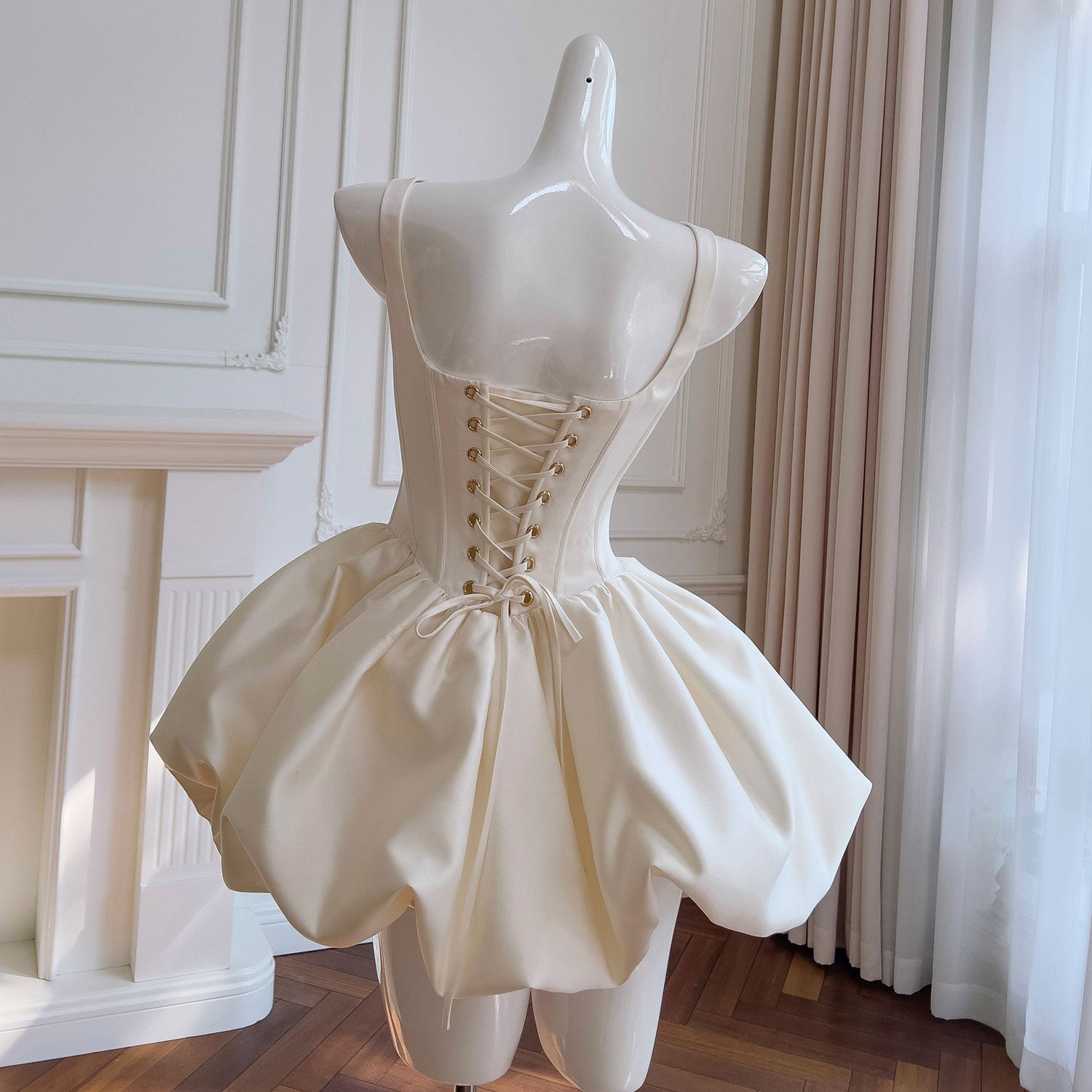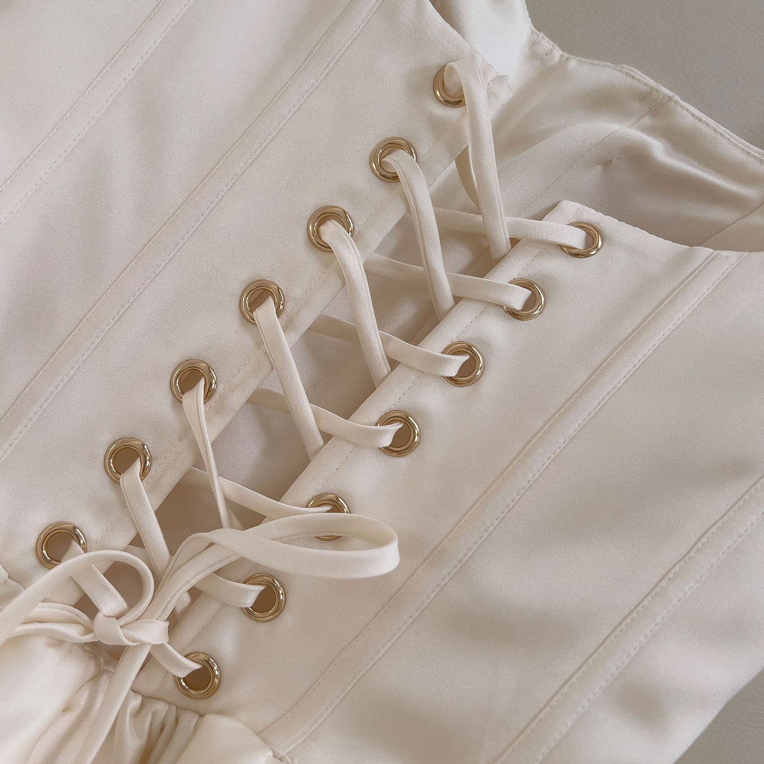 Boned Corset Puff Tulle Dress – Elegant Waist-Slimming Party Gown SE23500
