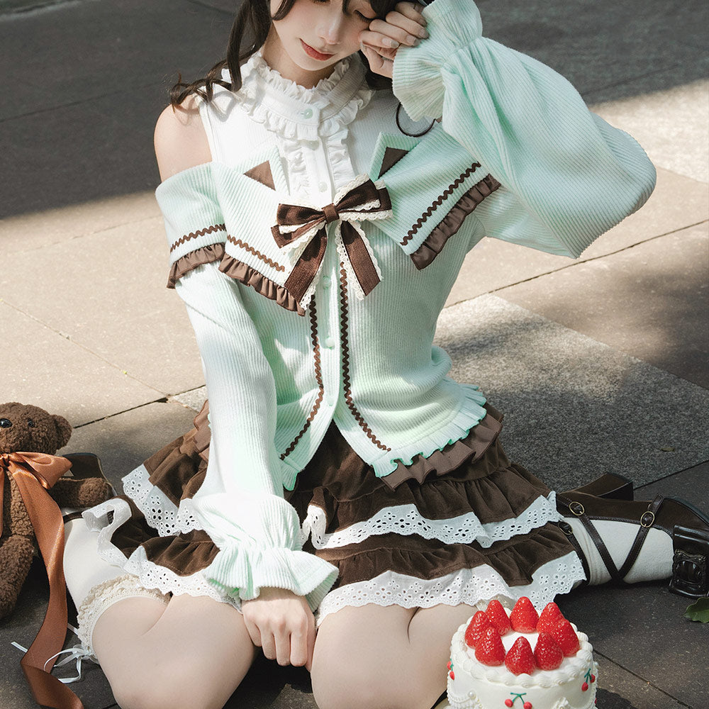 Bow Knit Sweater Skirt Set SE23821