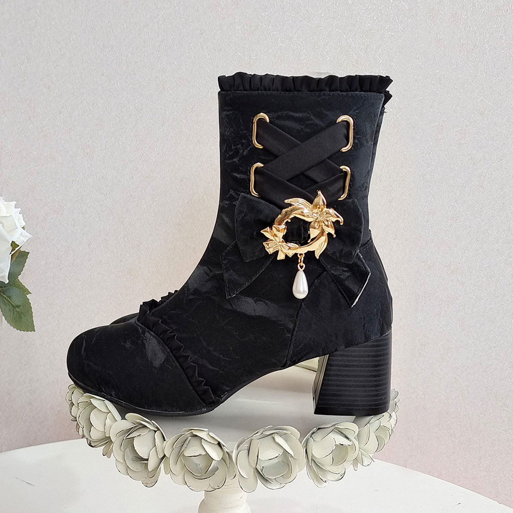 Bow Pearl Pendant Lolita Ankle Boots SE23802