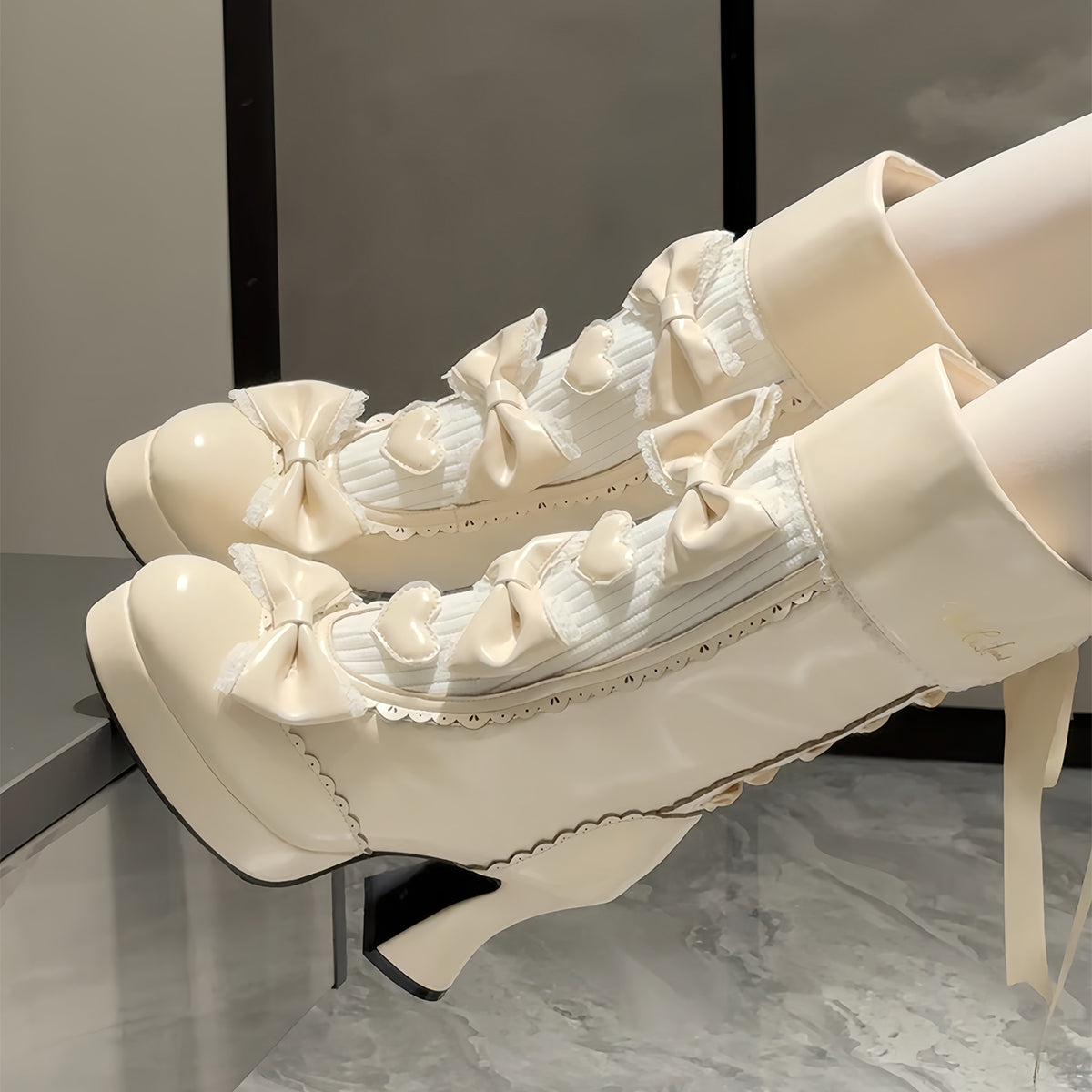 Gothic Lolita Platform Boots Adorned with Black Bows SE23796
