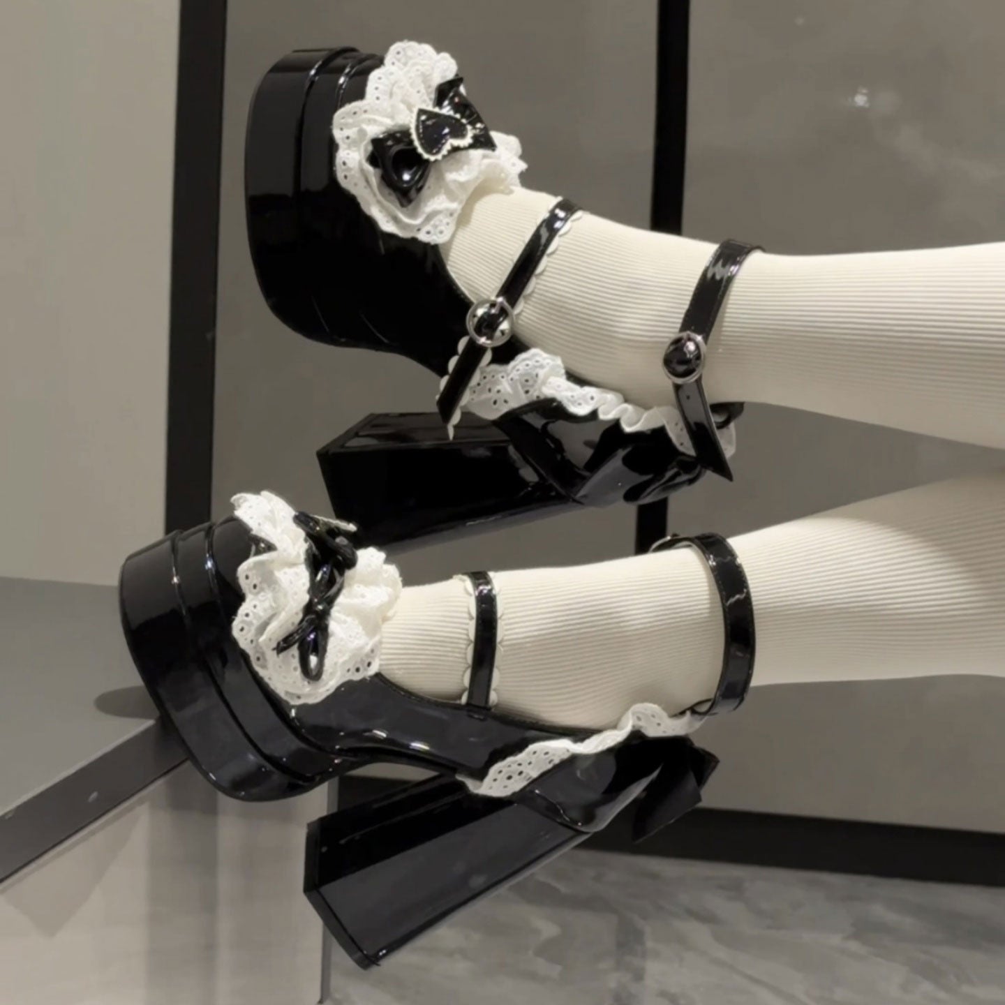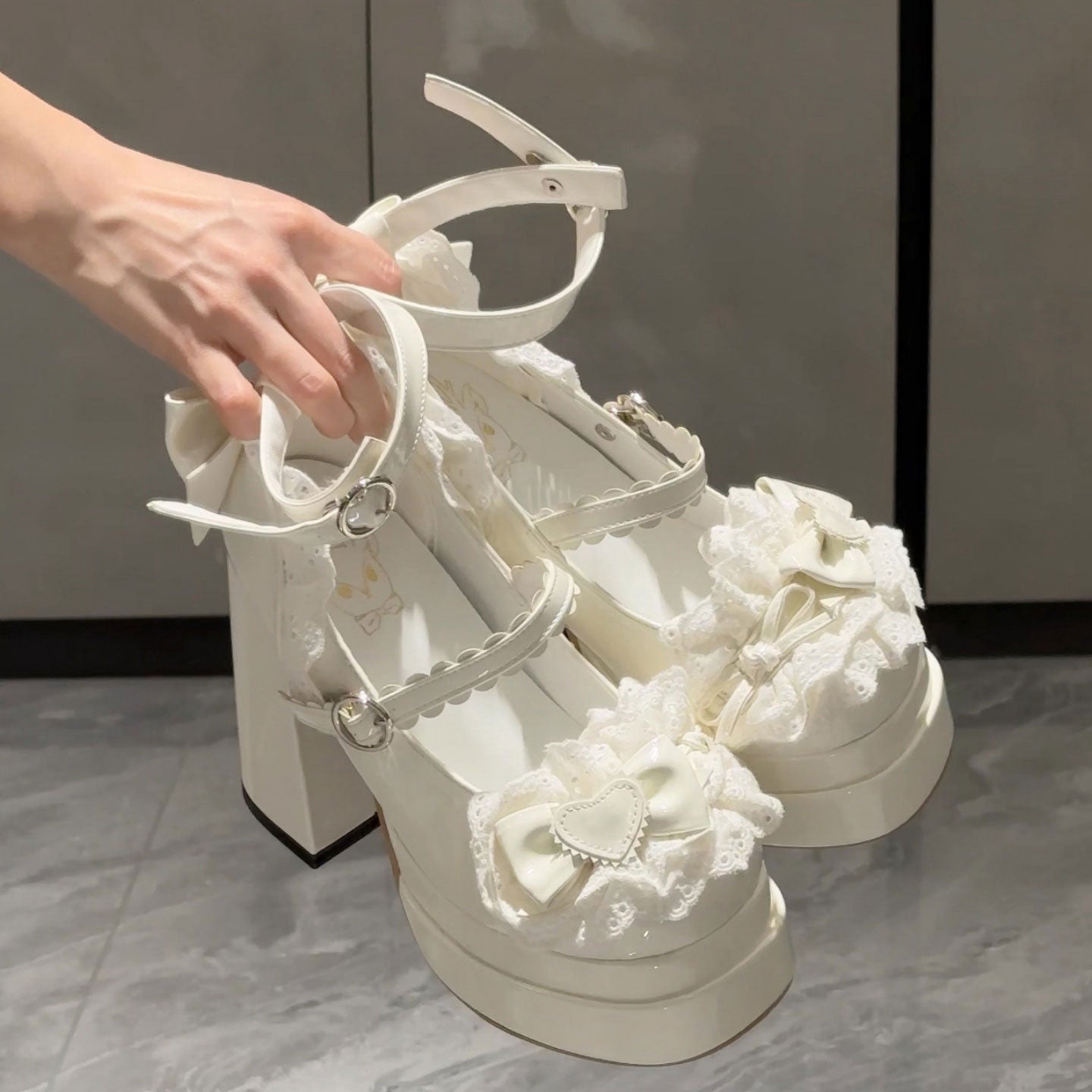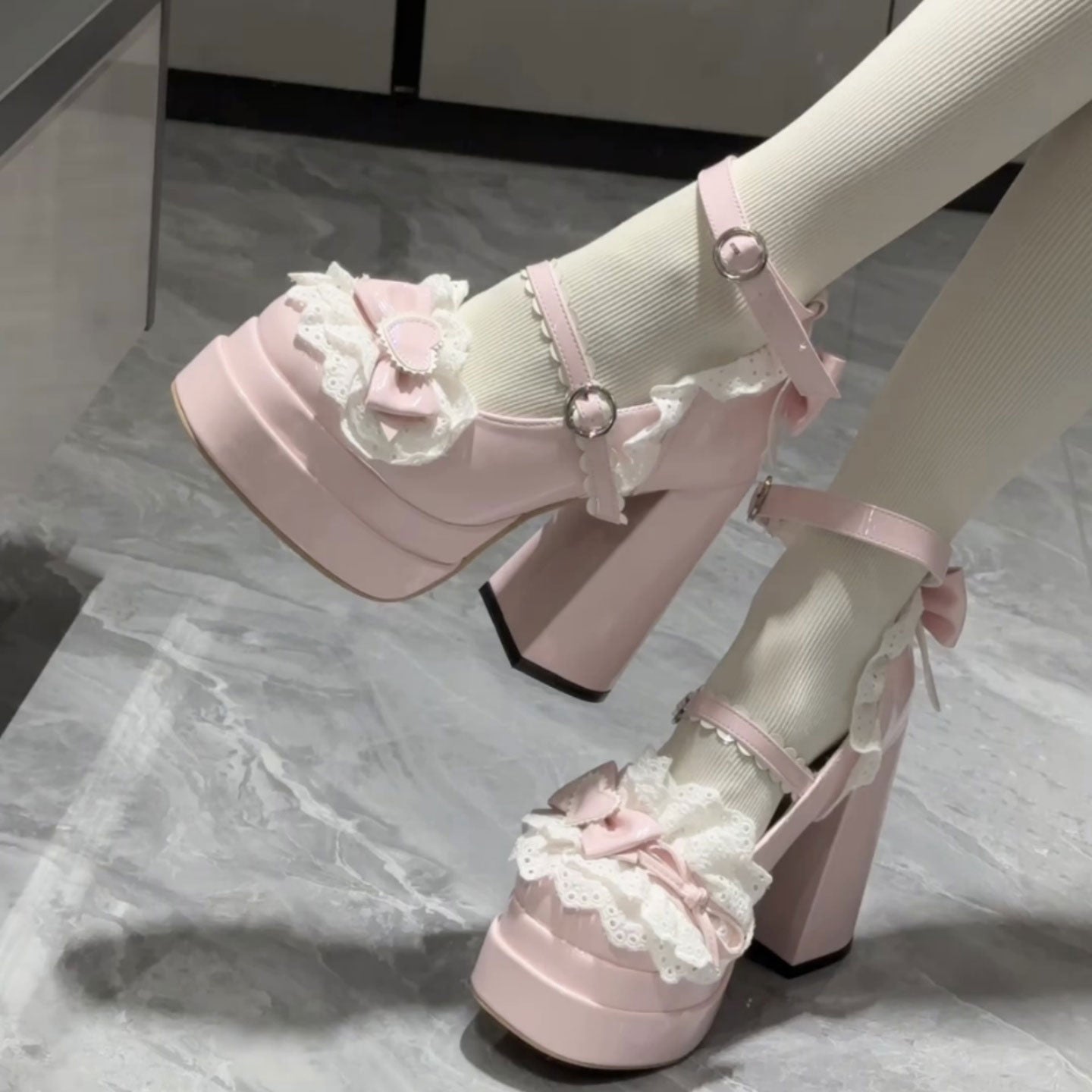Lace Bow Chunky Heels SE23520