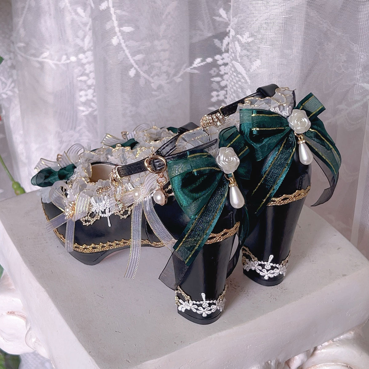 Lace Bow Heels Shoes SE23508