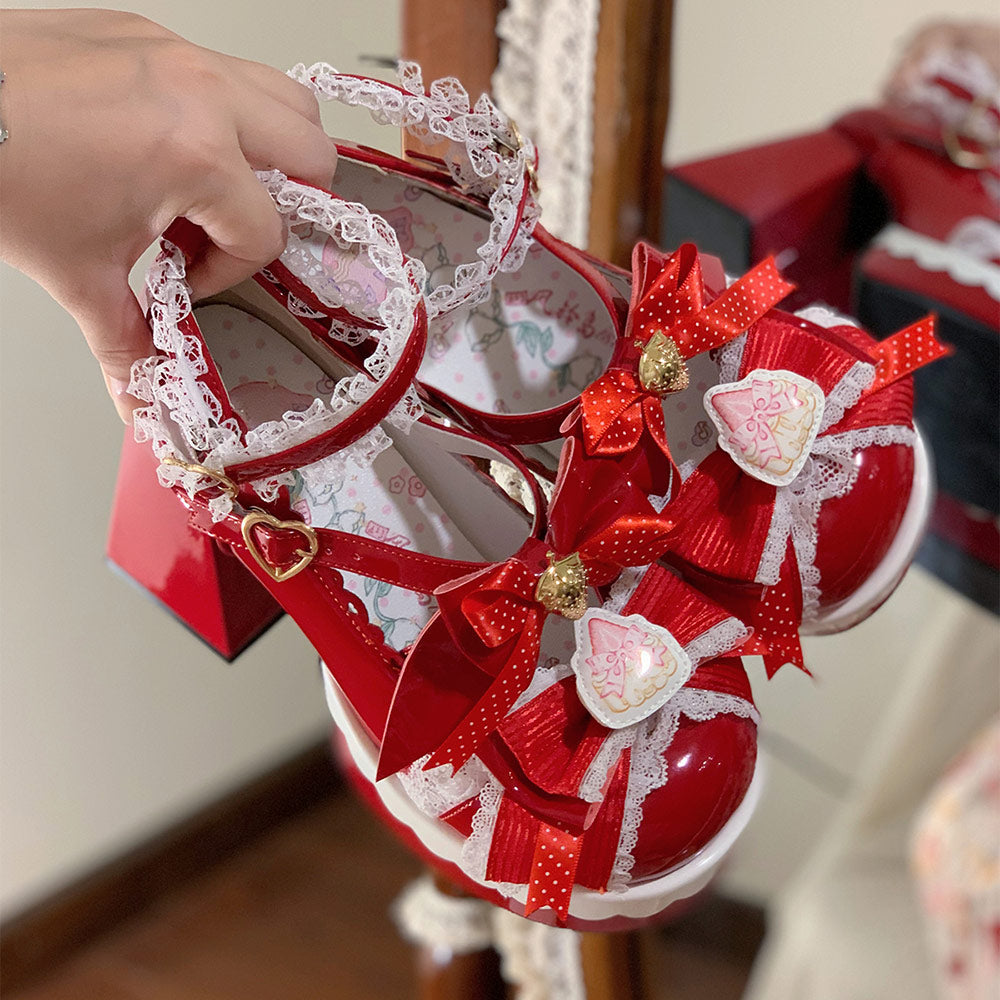 Strawberry Bow Lolita Shoes SE23700