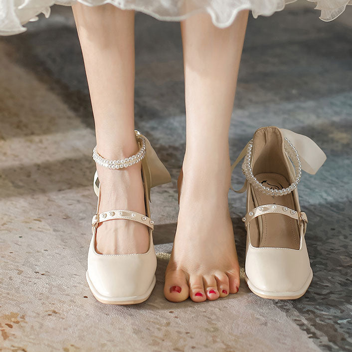 Sweet Bow Square Heel Shoes SE22512